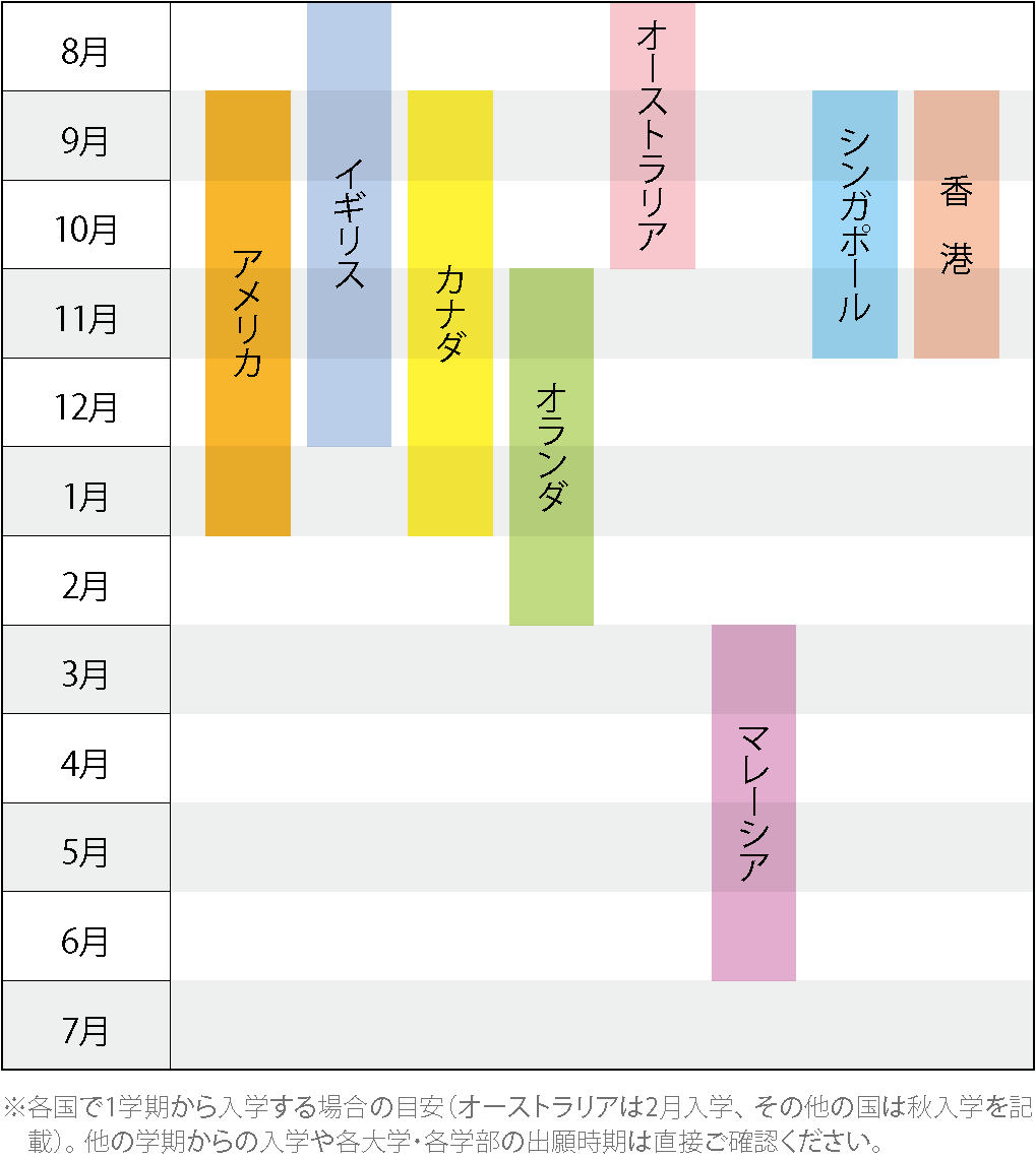 主な海外大学進学先の出願時期