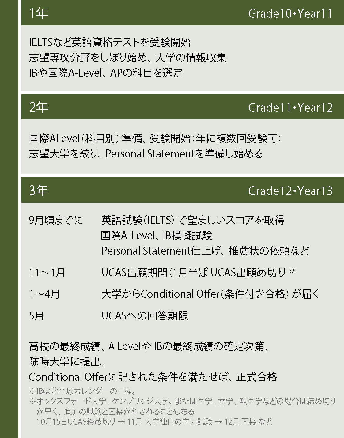| Garde11 | ・筆記試験・面接準備の開始 ・Personal statementの準備開始 ・IELTS受験 |