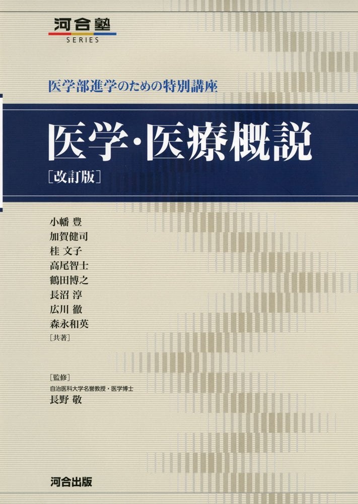 面接や小論文で問われることが多いため、最新の医療ニュースや社会問題に関心を持ちましょう。また、医学部入試において頻出の医療テーマについて理解を深めることも重要です。「医学・医療概説」(河合出版)は、詳しく、わかりやすい医学・医療入門参考書で、高校生のみならず、中学生の皆さまにもおすすめです。