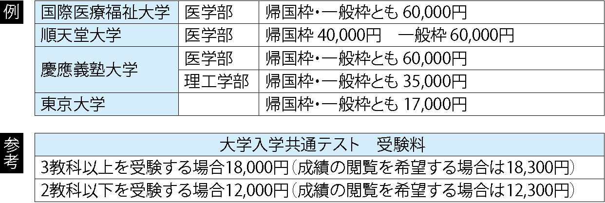 〈帰国枠〉 一般枠より受験料が安い大学もありますが、多くの場合は一般枠と同程度か、やや安い程度。