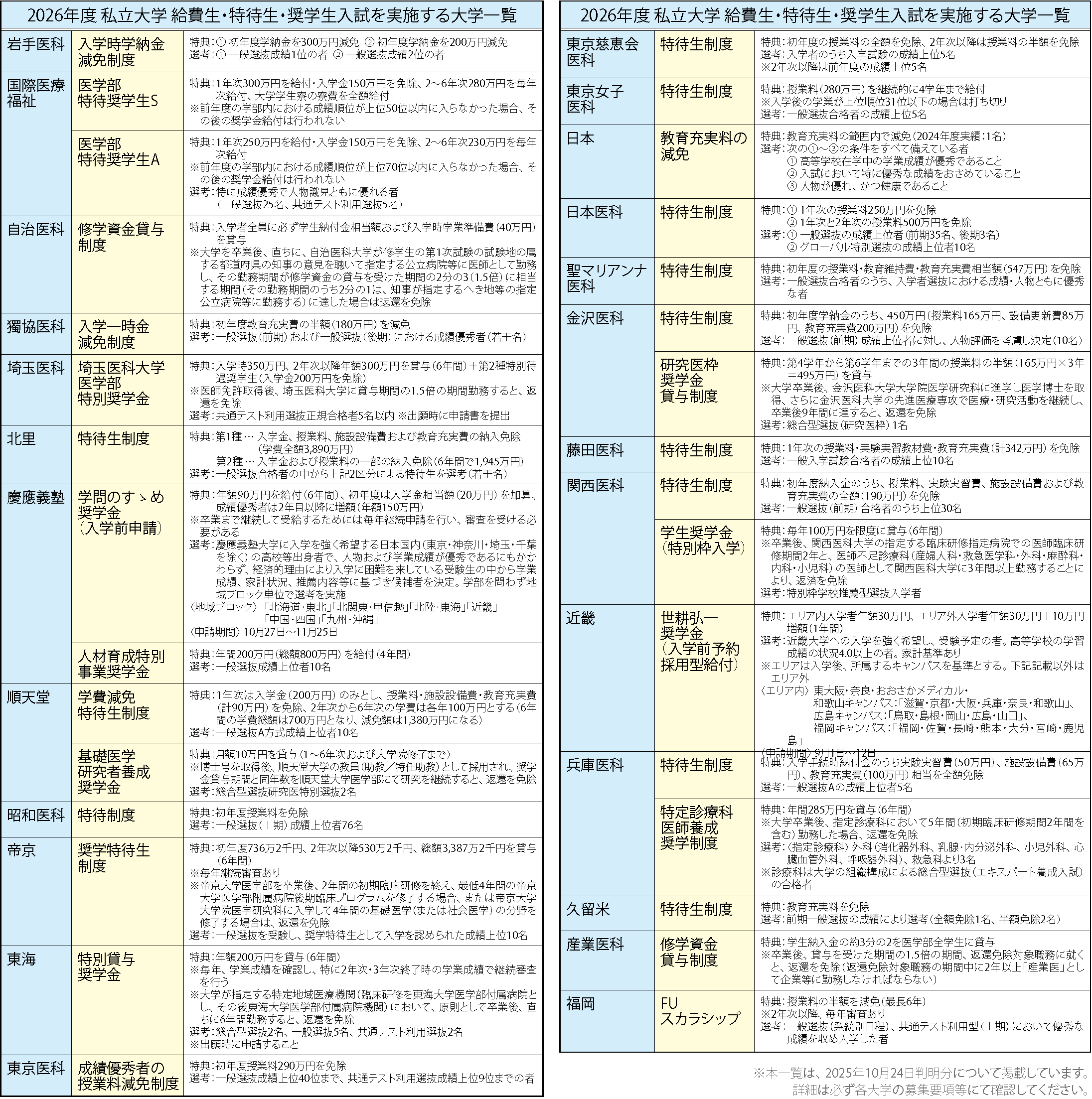 ❹ 医学部の給費生・特待生・奨学生入試を実施する大学