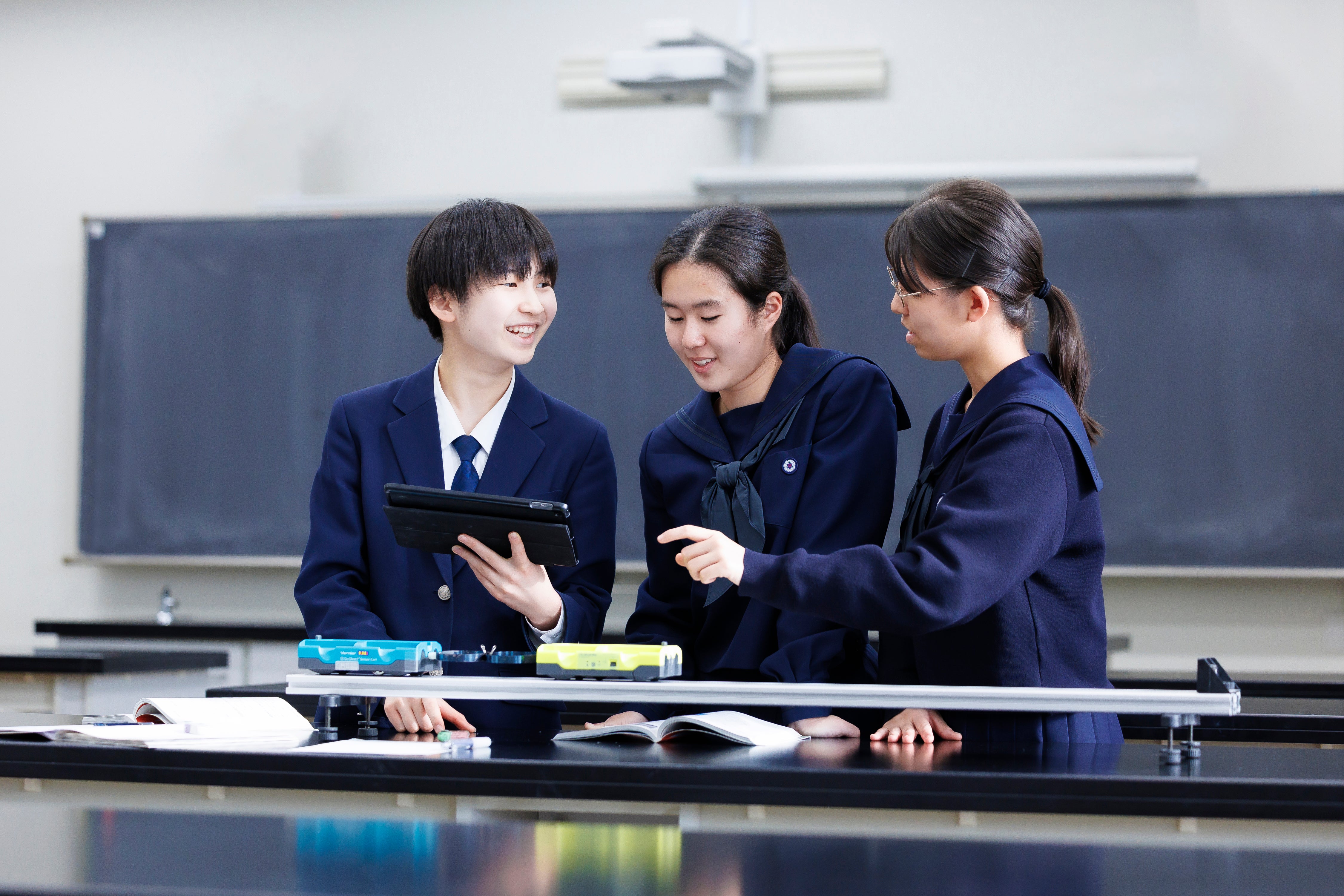 建学の精神「捨我精進」のもと、「体験」を重視した教育活動を展開しています。理科の実験は中学3年間で80を超えており、理系クラス選択者は45%程度にのぼります。数学と理科との教科横断型授業や週1時間実施の「探究」の授業、土曜プログラムで生徒の知的好奇心を刺激します。