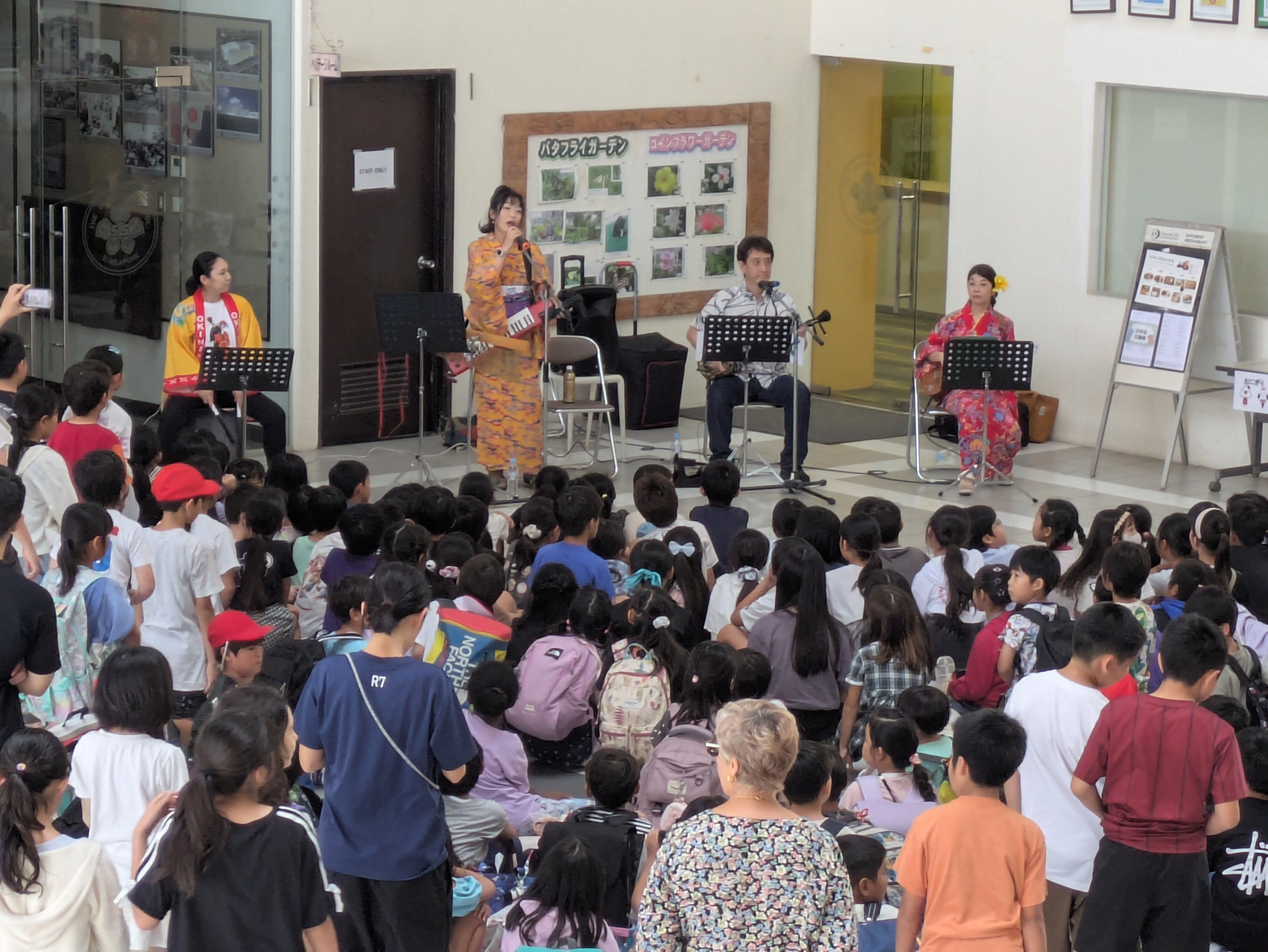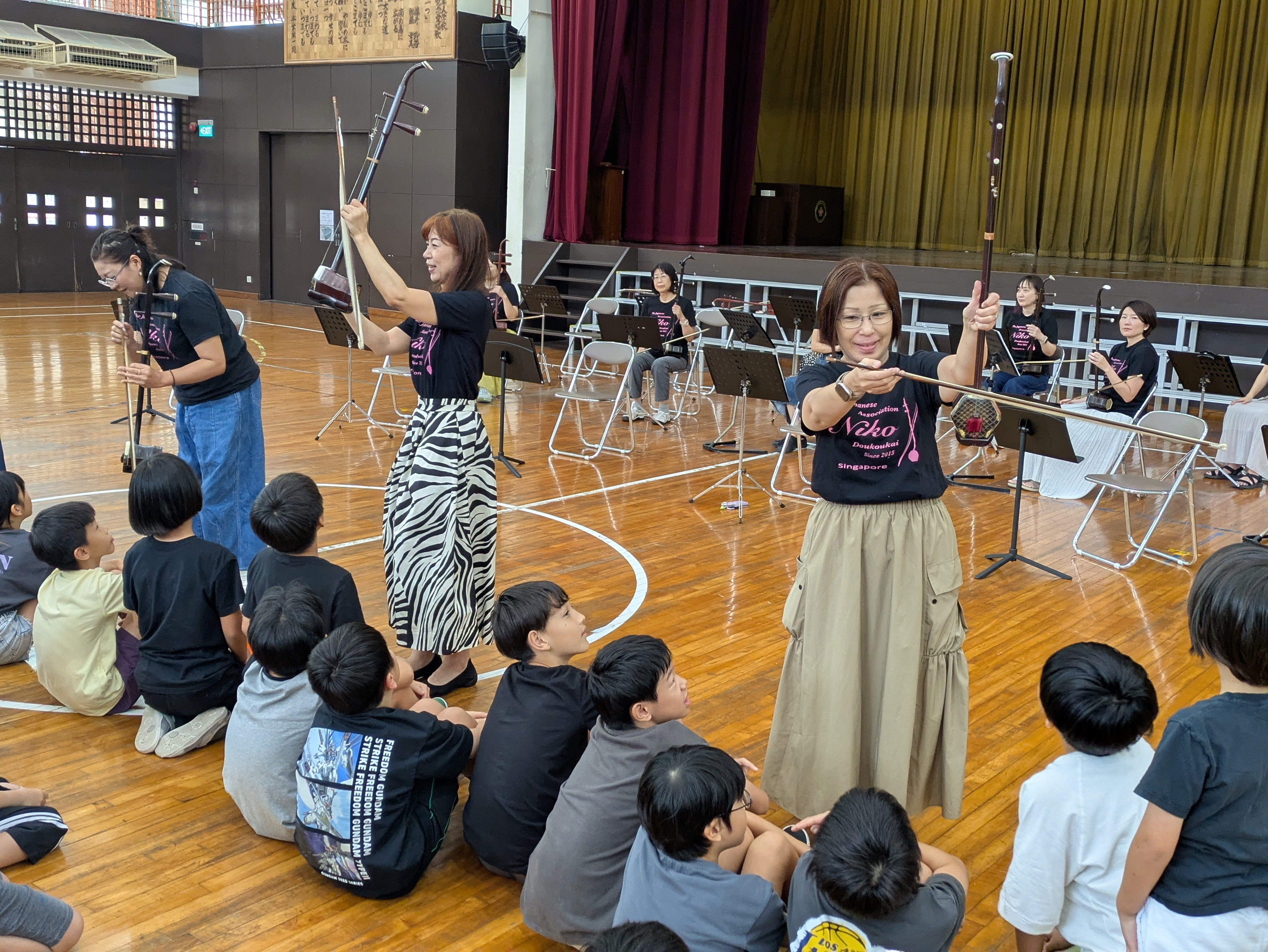 4年生は、シンガポール三線会の皆さまを講師にお招きし、三線の体験授業と全校児童向けの昼休みコンサートを開催しました。授業では、三線の歴史に関するクイズや実際の演奏鑑賞に加え、子どもたちが直接楽器に触れる体験も行われました。日本の文化をより身近に感じる貴重な機会となりました。