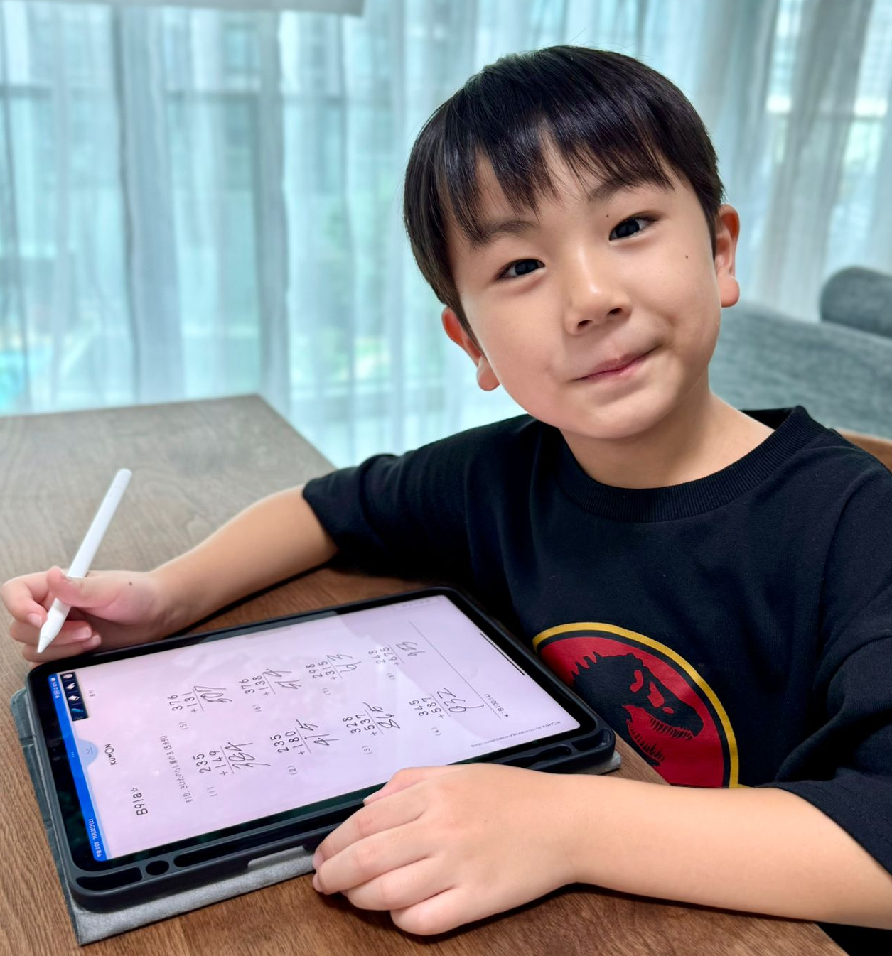 シンガポールからハノイへ転勤になり日本人教室がなかったため、プリント学習からタブレット学習へ切り替えオンラインで引き続きお世話になっています。離れていても変わらず丁寧にご指導いただき大変心強く感じています。Kumon Connectでは学習した日に星マークが付くため、息子はそれを励みに毎日コツコツ頑張っています。兄の習いごとの待ち時間や旅行中の隙間時間も有効に使えるようになり無理なく継続できています。そのおかげで学習習慣がしっかり身に付き、着実な成長を感じています。