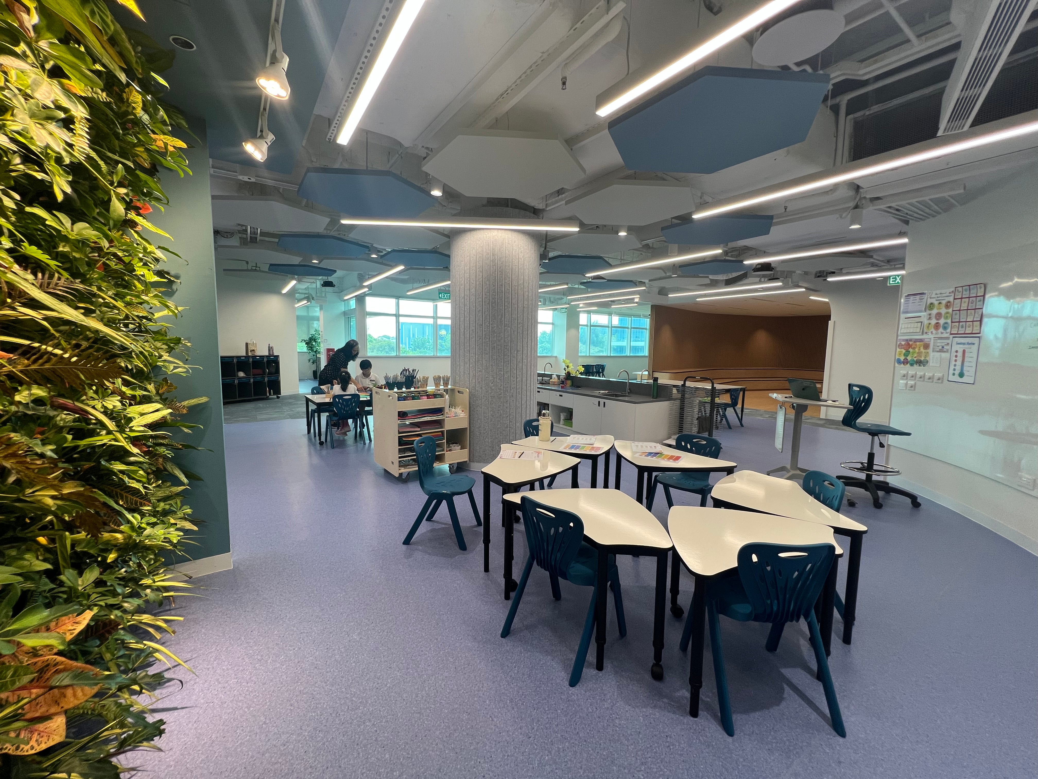 キャンパスはシンガポール中心部から車で約20分のチャンギ・ビジネスパークに位置し、著名な建築家トルン・レ氏によって設計されました。「学習環境は第三の教師である」という思想のもと、校舎は子どもたちが集中し、主体的に学べるようにデザインされています。
